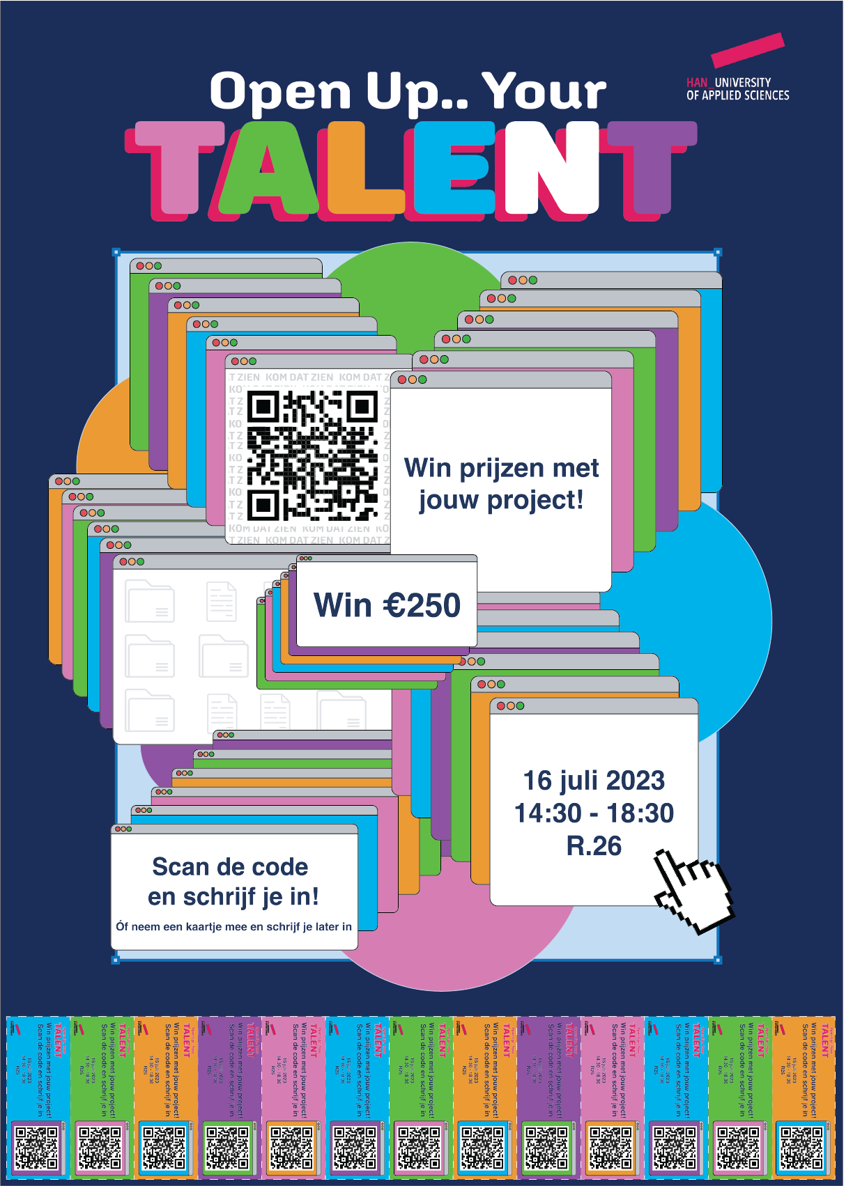Deze opdracht kwam van de HAN. Zij vroegen ons om een individueel een poster te ontwerpen voor het Open Up...Your Talevent event. De doelgroep hierbij waren ICT & CMD studenten.